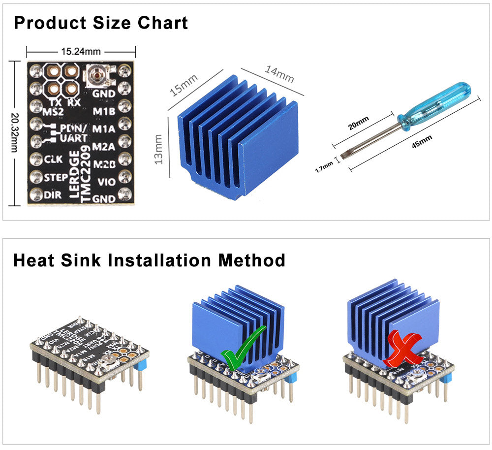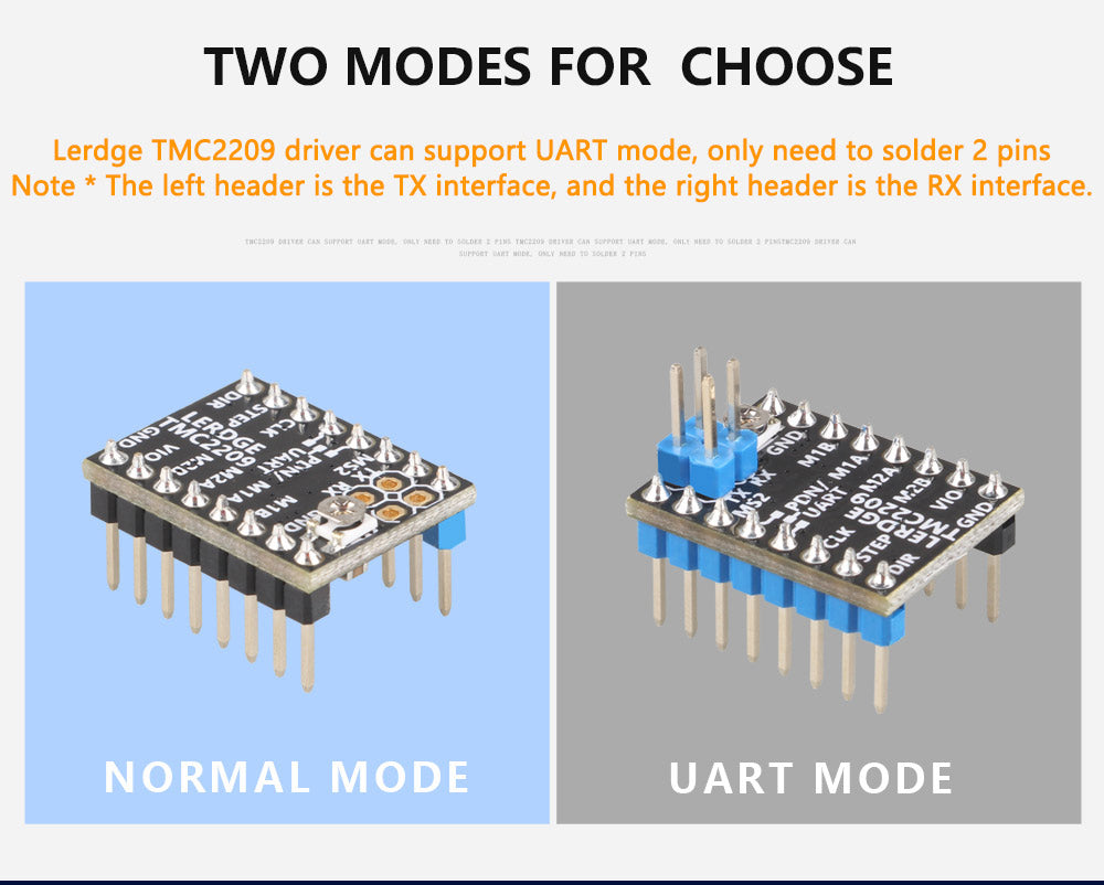Benötigt das von anderen Firmen gemäß der Open-Source-Zeichnung hergestellte TMC2209-Modul bei Verwendung der UARNT-Funktion einen internen 1K-Widerstand. Der TMC2209 von LERDGE hat den Widerstand auf dem Modul integriert, der Anwender muss ihn nur noch verdrahten.